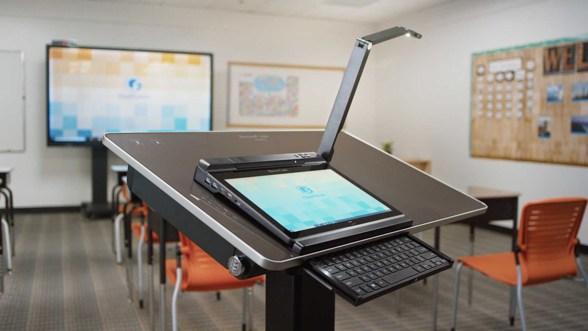 Pilot X is your new digital teaching station, designed to drive student engagement through teacher mobility. It combines every essential classroom technology into one convenient, wireless station, so teachers can spend less time setting up, and more time doing what they love teaching!